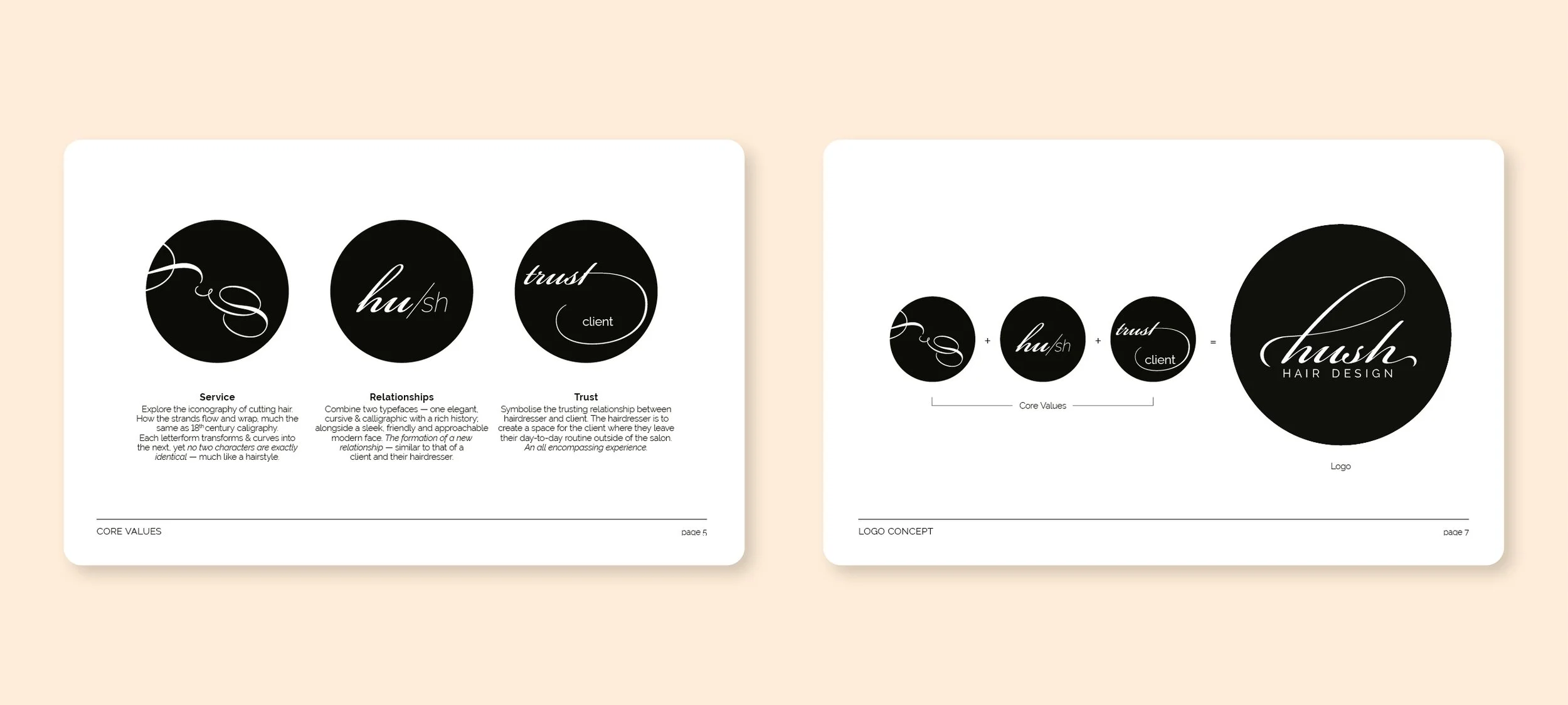 Take the three core pillars of Hush Hair Design — Service, Relationships and Trust — and build a gentle, elegant and flowing identity for the local hair design studio.